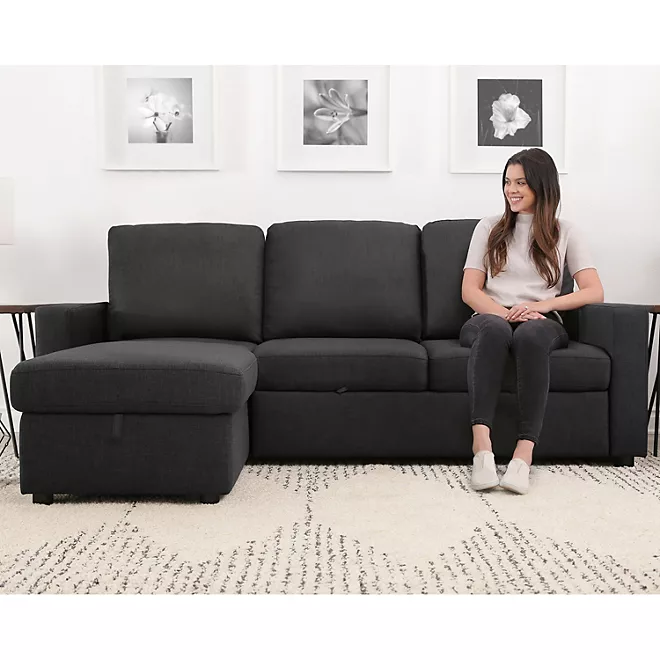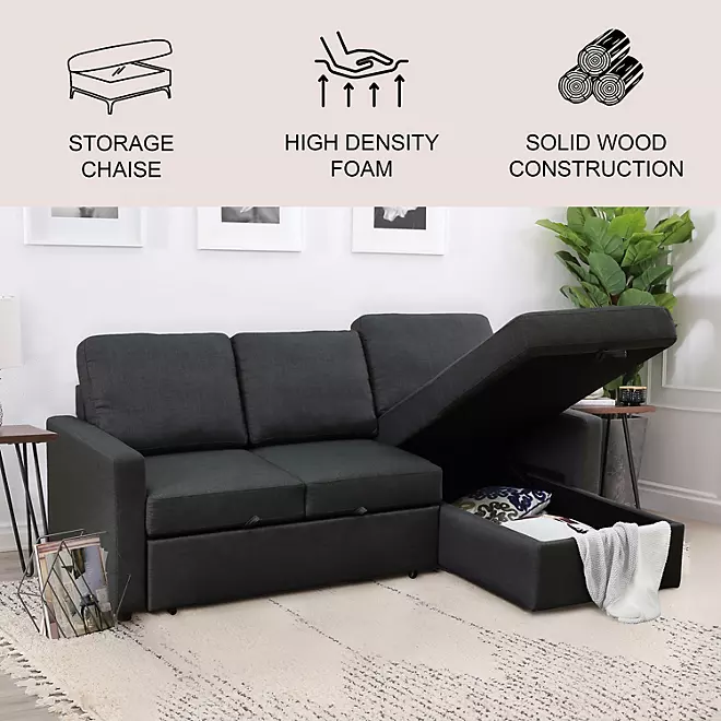 Lincoln Fabric Reversible Storage Sectional with Pullout Bed – Comfortable & Practical